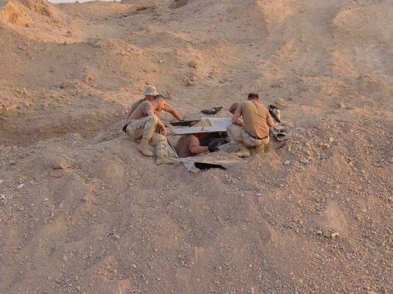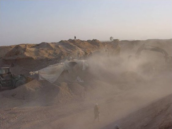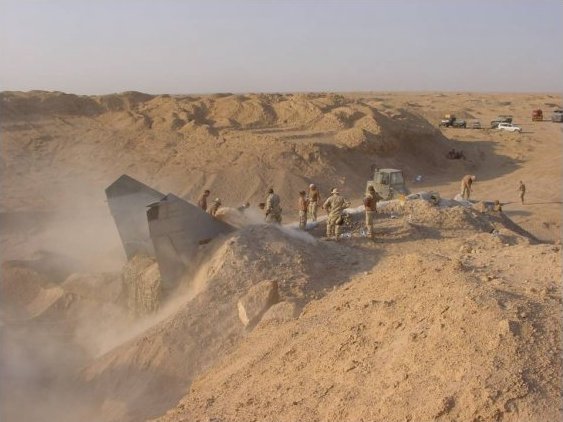 Here's a series of pictures of an Iraqi MiG-25 Foxbat B being unearthed by the American military at Al Taqqadum airfield in Iraq on 6 July 2003.